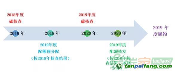 以2019年作為履約年度為例,配額發(fā)放的時(shí)間點(diǎn)如下: