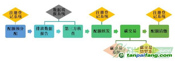 交易系統(tǒng)??嘏牌髽I(yè)獲取的配額會(huì)由主管部門(mén)下發(fā)到注冊(cè)登記賬戶,最終履約配額也需通過(guò)注冊(cè)登記系統(tǒng)提交;當(dāng)企業(yè)需進(jìn)行買(mǎi)入或賣(mài)出配額時(shí),需通過(guò)碳交易賬戶來(lái)完成。