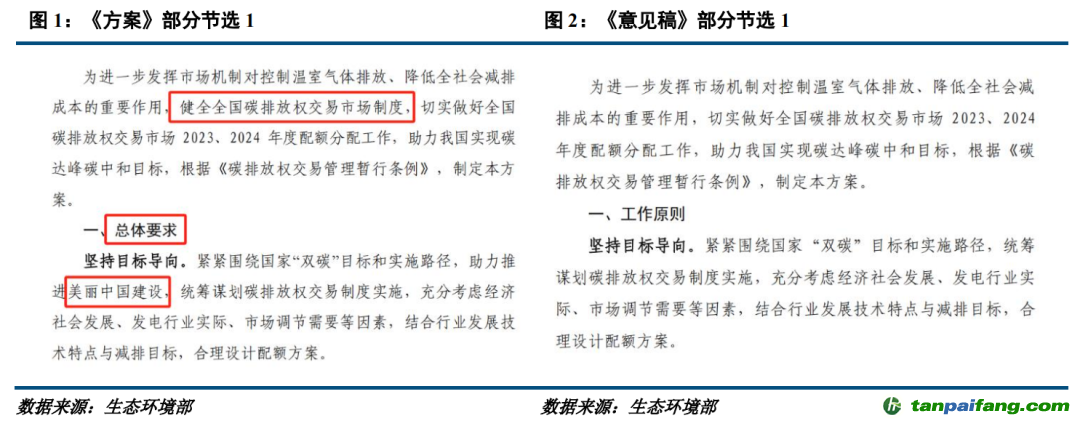 碳市場重要性再強調(diào),助力美麗中國建設(shè)。對比7月2日的《意見稿》,《方案》中的總領(lǐng)部分有新增內(nèi)容,一是將“健全全國碳排放權(quán)交易市場制度”加入,二是將“工作原則”改成“總體要求”,并指出:堅持目標導(dǎo)向,緊緊圍繞國家“雙碳”目標和實施路徑,助力推進美麗中國建設(shè),統(tǒng)籌謀劃碳排放權(quán)交易制度實施,充分考慮經(jīng)濟社會發(fā)展、發(fā)電行業(yè)實際、市場調(diào)節(jié)需要等因素,結(jié)合行業(yè)發(fā)展技術(shù)特點與減排目標,合理設(shè)計配額方案。其中,相較于《征求稿》,新加入“助力推進美麗中國建設(shè)”等字眼,再次強調(diào)了碳市場的發(fā)展將圍繞美麗中國的建設(shè),碳市場的政治性來到新高度。 夲呅內(nèi)傛萊源亍:ф啯碳*排*放^鮫*易-網(wǎng) τā ńpāīfāńɡ.cōm