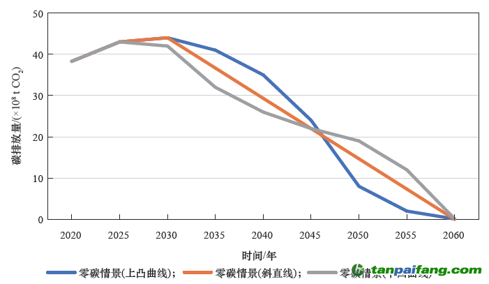 圖8 零碳情景下不同碳減排路徑對(duì)比圖 內(nèi)-容-來-自;中_國_碳_0排放¥交-易=網(wǎng) t an pa i fa ng . c om