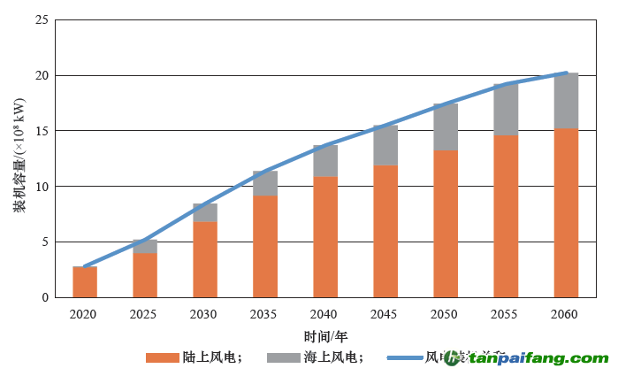 圖12 零碳情景下2020—2060 年風(fēng)電發(fā)電裝機(jī)結(jié)構(gòu) 本+文+內(nèi)/容/來/自:中-國-碳-排-放(交—易^網(wǎng)-tan pai fang . com