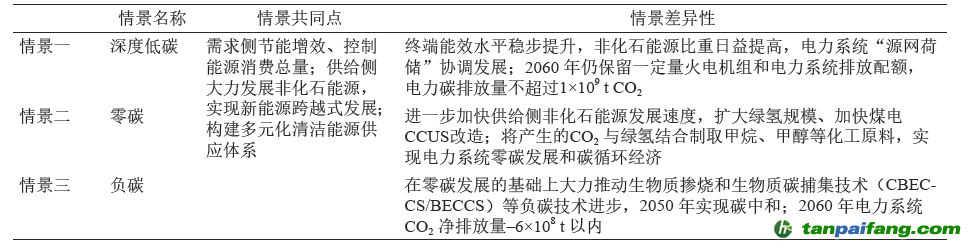 表1 電力低碳轉(zhuǎn)型的主要情景