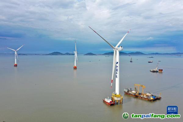 這是華電福清海壇海峽海上風(fēng)電項目首臺海上風(fēng)電主控系統(tǒng)國產(chǎn)化機(jī)組(右)(2021年5月28日攝,無人機(jī)照片)。新華社記者 姜克紅 攝 本+文內(nèi).容.來.自:中`國`碳`排*放*交*易^網(wǎng) ta np ai fan g.com