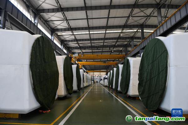 這是在內(nèi)蒙古鄂爾多斯市一家能源裝備有限公司生產(chǎn)車間拍攝的準(zhǔn)備出售的風(fēng)電機(jī)(2018年4月18日攝)。新華社記者 劉磊 攝