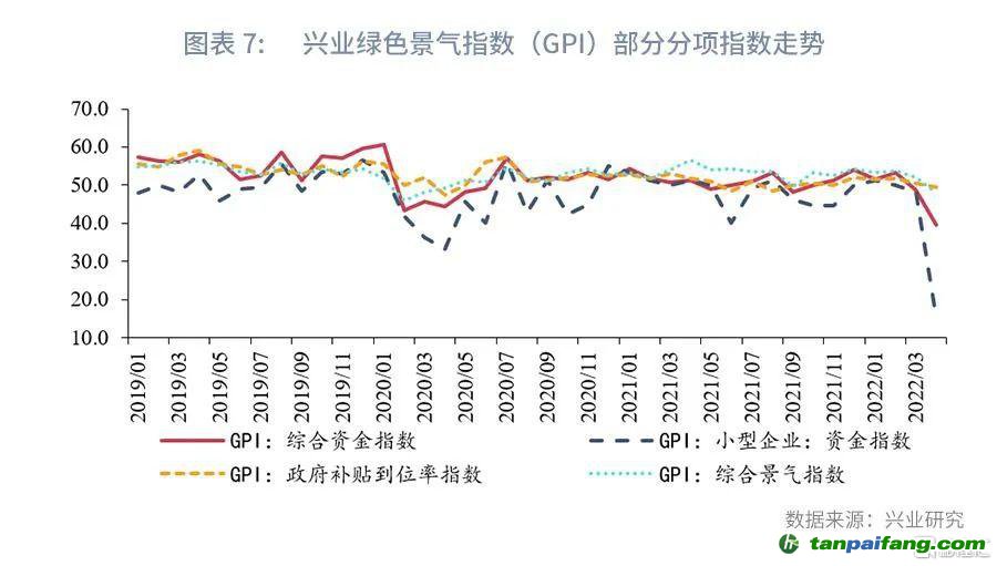 三是支持生態(tài)環(huán)境領(lǐng)域PPP項(xiàng)目。《意見》提出“采取多種方式支持生態(tài)環(huán)境領(lǐng)域政府和社會(huì)資本合作(PPP)項(xiàng)目,規(guī)范地方政府對(duì)PPP項(xiàng)目履約行為”。由于存在一定公益屬性,大部分生態(tài)環(huán)境領(lǐng)域的PPP項(xiàng)目回報(bào)機(jī)制以政府付費(fèi)為主,而很多項(xiàng)目存在資金需求量大、投資回報(bào)周期長的特點(diǎn),這時(shí)地方政府的履約行為將直接影響相關(guān)企業(yè)的資金周轉(zhuǎn)情況。興業(yè)研究自2018年起對(duì)綠色環(huán)保企業(yè)開展調(diào)研,并依據(jù)調(diào)研結(jié)果每月編制發(fā)布“興業(yè)綠色景氣指數(shù)”(GPI指數(shù)),從四年多的調(diào)研結(jié)果來看,資金周轉(zhuǎn)問題一直是綠色環(huán)保企業(yè)生產(chǎn)經(jīng)營過程中面臨的最主要問題之一,而綠色環(huán)保企業(yè)的資金周轉(zhuǎn)情況往往與政府補(bǔ)貼到位率密切相關(guān)(見圖表7),當(dāng)補(bǔ)貼到位率指數(shù)下降時(shí),資金指數(shù)往往下降更快、下降幅度也更大,特別是在中小型企業(yè)中尤為明顯。與此同時(shí),自我們調(diào)研開始以來,補(bǔ)貼到位率指數(shù)在超過70%的月份都低于GPI綜合景氣指數(shù),這也反映出綠色環(huán)保產(chǎn)業(yè)普遍存在補(bǔ)貼到位率相對(duì)較低的問題?!兑庖姟诽岢?ldquo;規(guī)范地方政府對(duì)PPP項(xiàng)目履約行為”將有助于改善生態(tài)環(huán)境領(lǐng)域PPP項(xiàng)目中政府付費(fèi)和補(bǔ)貼拖欠的問題。此外,進(jìn)一步深化生態(tài)環(huán)境領(lǐng)域價(jià)格機(jī)制改革,提高相關(guān)企業(yè)和PPP項(xiàng)目盈利能力,也是支持生態(tài)環(huán)境領(lǐng)域PPP項(xiàng)目發(fā)展的一種方式。