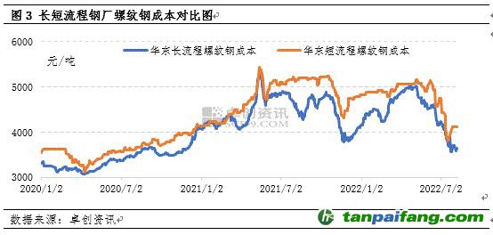 其次,國外電爐發(fā)展技術相對成熟,價格較鐵水能保持持續(xù)低位,電爐成本低于高爐成本,生產具備優(yōu)勢。而中國一方面短流程煉鋼技術尚未充分成熟,電耗高、用電成本高,雜質純凈度控制有限,主要適用于螺紋鋼(4060, -53.00, -1.29%);另一方面廢鋼供給不足,廢鋼價格一般大于鐵水價格,高爐生產成本相對電爐較低,高爐競爭力強于電爐,影響了電爐鋼比的提升。 本+文`內/容/來/自:中-國-碳-排-放-網-tan pai fang . com