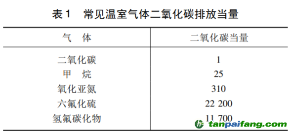 我們所說的“碳”,并非單指二氧化碳這一種氣體,而是指以二氧化碳?xì)怏w為代表的若干種造成氣候變暖的溫室氣體。主要包括二氧化碳、甲烷、氧化亞氮、氫氟碳化物、全氟化碳和六氟化硫(見表1),這些氣體自然界中存量很少,主要是由于人類的生產(chǎn)與生活活動產(chǎn)生,以上幾種主要溫室氣體的排放,嚴(yán)重加劇了全球氣候變暖和溫室效應(yīng),對在地球棲息的各種生物的生存環(huán)境造成不利影響。