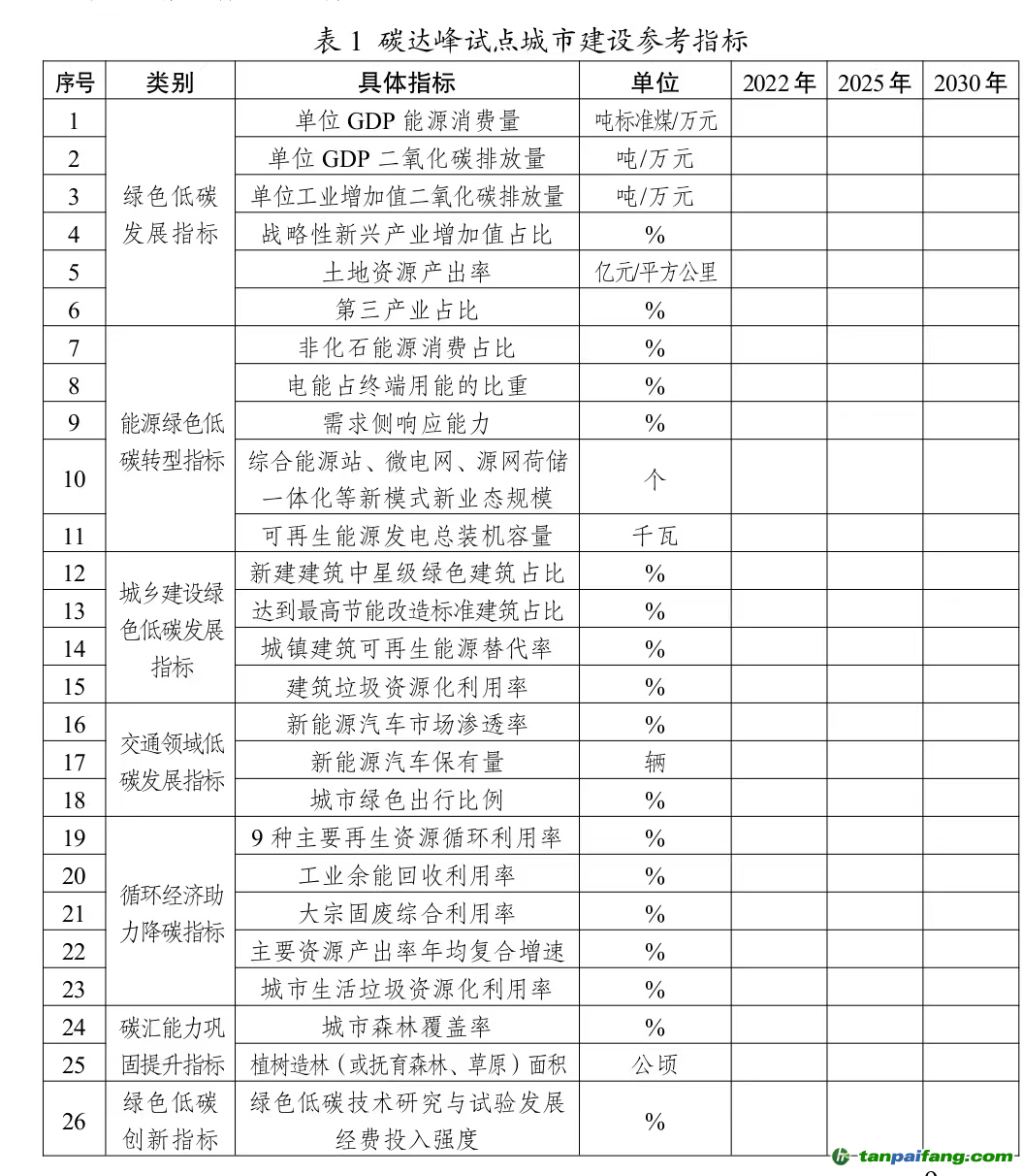 國務院在2021年10月24日印發(fā)的《2030年前碳達峰行動方案》已經(jīng)明確提出,要加大中央對地方推進碳達峰的支持力度。31個省、自治區(qū)、直轄市也都制定了本地區(qū)碳達峰實施方案,但是各地區(qū)能源結構、資源稟賦和發(fā)展階段不同,推進碳達峰碳中和工作也面臨著不同的困難挑戰(zhàn),特別是在城市和園區(qū)層面還有不少需要進一步細化和探索的工作。建設碳達峰試點城市和園區(qū),可以有效激發(fā)城市和園區(qū)主動性和創(chuàng)造性,圍繞綠色低碳轉型開展探索,為全國提供行之有效的經(jīng)驗做法,助力實現(xiàn)“雙碳”目標。 禸嫆@唻洎:狆國湠棑倣茭昜蛧 τāńpāīfāńɡ.cōm
