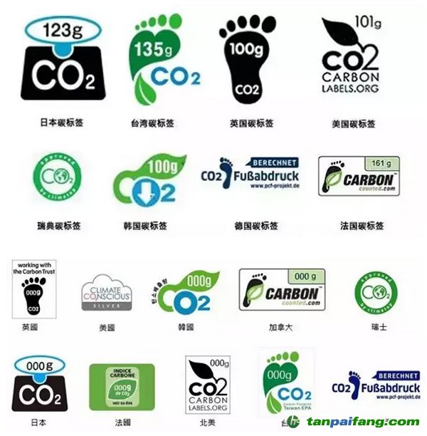 各國/地區(qū)產(chǎn)品碳標(biāo)識圖案 本*文@內(nèi)-容-來-自;中_國_碳^排-放*交-易^網(wǎng) t an pa i fa ng . c om