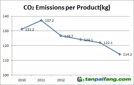 根據(jù)蘋果2015年環(huán)境責(zé)任報告,公司的單位產(chǎn)品碳排放量自2011年起呈逐年下降趨勢。 內(nèi)-容-來-自;中_國_碳_0排放¥交-易=網(wǎng) t an pa i fa ng . c om