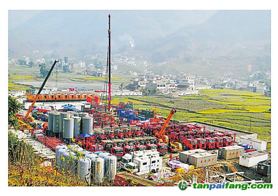 圖為長(zhǎng)寧頁巖氣水平井組“拉鏈?zhǔn)?rdquo;壓裂現(xiàn)場(chǎng)。