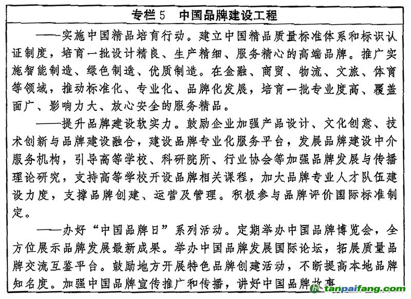 (二十一)爭創(chuàng)國內(nèi)國際知名品牌。完善品牌培育發(fā)展機(jī)制,開展中國品牌創(chuàng)建行動(dòng),打造中國精品和“百年老店”。鼓勵(lì)企業(yè)實(shí)施質(zhì)量品牌戰(zhàn)略,建立品牌培育管理體系,深化品牌設(shè)計(jì)、市場推廣、品牌維護(hù)等能力建設(shè),提高品牌全生命周期管理運(yùn)營能力。開展品牌理論、價(jià)值評價(jià)研究,完善品牌價(jià)值評價(jià)標(biāo)準(zhǔn),推動(dòng)品牌價(jià)值評價(jià)和結(jié)果應(yīng)用。統(tǒng)籌開展中華老字號和地方老字號認(rèn)定,完善老字號名錄體系。持續(xù)辦好“中國品牌日”系列活動(dòng)。支持企業(yè)加強(qiáng)品牌保護(hù)和維權(quán),依法嚴(yán)厲打擊品牌仿冒、商標(biāo)侵權(quán)等違法行為,為優(yōu)質(zhì)品牌企業(yè)發(fā)展創(chuàng)造良好環(huán)境。 內(nèi).容.來.自:中`國`碳#排*放*交*易^網(wǎng) t a np ai f an g.com