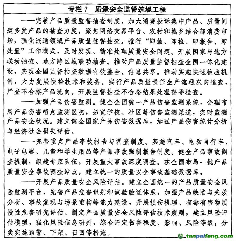 (三十一)狠抓工作落實(shí)。各級黨委和政府要將質(zhì)量強(qiáng)國建設(shè)列入重要議事日程,納入國民經(jīng)濟(jì)和社會(huì)發(fā)展規(guī)劃、專項(xiàng)規(guī)劃、區(qū)域規(guī)劃。各地區(qū)各有關(guān)部門要結(jié)合實(shí)際,將綱要主要任務(wù)與國民經(jīng)濟(jì)和社會(huì)發(fā)展規(guī)劃有效銜接、同步推進(jìn),促進(jìn)產(chǎn)業(yè)、財(cái)政、金融、科技、貿(mào)易、環(huán)境、人才等方面政策與質(zhì)量政策協(xié)同,確保各項(xiàng)任務(wù)落地見效。 禸嫆@唻洎:狆國湠棑倣茭昜蛧 τāńpāīfāńɡ.cōm