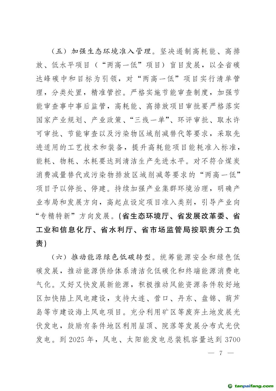 推動(dòng)能源綠色低碳轉(zhuǎn)型。統(tǒng)籌能源安全和綠色低碳發(fā)展,推動(dòng)能源供給體系清潔化低碳化和終端能源消費(fèi)電氣化。積極推動(dòng)風(fēng)能資源條件較好地區(qū)加快陸上風(fēng)電建設(shè),支持大連、營(yíng)口、丹東、盤錦、葫蘆島等市建設(shè)海上風(fēng)電項(xiàng)目。充分利用礦區(qū)等廢棄土地發(fā)展光伏發(fā)電,鼓勵(lì)有條件地區(qū)利用屋頂、院落等發(fā)展分布式光伏發(fā)電。到2025年,風(fēng)電、太陽(yáng)能發(fā)電總裝機(jī)容量達(dá)到3700萬(wàn)千瓦以上。安全有序發(fā)展核電,全力推進(jìn)徐大堡核電二期建設(shè)。積極爭(zhēng)取徐大堡核電一期、莊河核電一期盡快核準(zhǔn)并開(kāi)工建設(shè)。促進(jìn)氫能產(chǎn)業(yè)創(chuàng)新發(fā)展,加快建設(shè)風(fēng)光火核儲(chǔ)一體化能源基地。到2025 年全省清潔能源裝機(jī)占比達(dá)到55%、發(fā)電量占比達(dá)到48%以上。合理調(diào)控油氣消費(fèi),因地制宜有序引導(dǎo)天然氣消費(fèi),積極擴(kuò)大上游氣源供應(yīng),優(yōu)先保障民生用氣。省內(nèi)原油年產(chǎn)量穩(wěn)定在1000萬(wàn)噸左右,保持石油消費(fèi)處于合理區(qū)間,提升終端燃油產(chǎn)品能效。 內(nèi).容.來(lái).自:中`國(guó)*碳-排*放*交*易^網(wǎng) t a npai fa ng.com